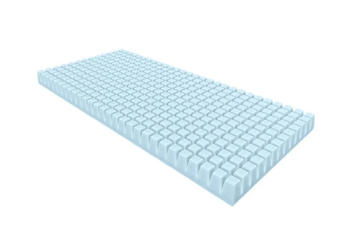 Specjalne nacięcia tworzą bezdotykowe strefy z poduszkami powietrza, co zmniejsza wielkość kontaktu ciała z materacem, a tym samym podatność na odleżyny.